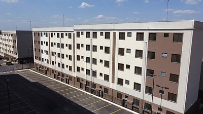 Residência prática com 46 m² de área construída, 2 dormitórios, banheiro social, sala, cozinha americana, área de serviço com tanque e 1 vaga de garagem descoberta.