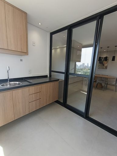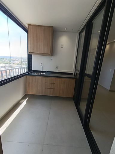 🌅 Varanda gourmet com armário, pia e fechamento em vidro blindex